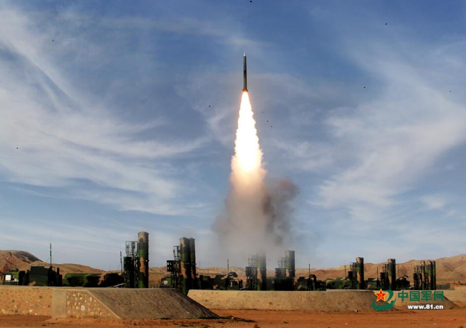 Soldiers of a brigade of the PLA Air Force conduct confrontation exercise in Gobi desert in June during which more than 10 guided missiles were launched to shoot down “enemy planes”. (Photo/81.cn)