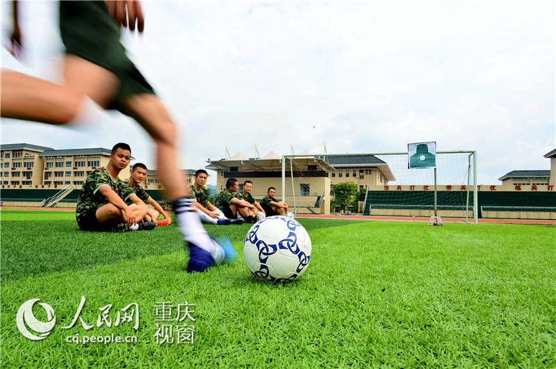 Soldiers practice football techniques in Chongqing, southwest China. (Photo/cq.people.cn)
