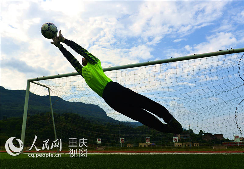 A goalkeeper in training in Chongqing, southwest China. (Photo/cq.people.cn)