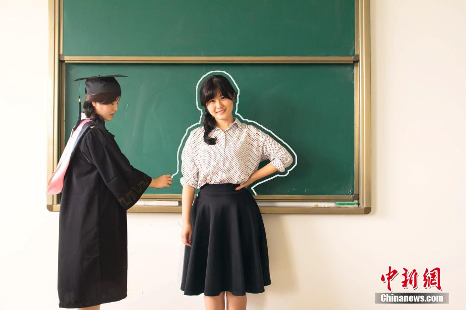 A group of creative graduation photos released by college students in Jinjiang College of Sichuan University has drawn much attention from the public. The students photoshopped themselves into the photos, showing their youth stories in fresh and romantic style. (Photo/Cao Rui)