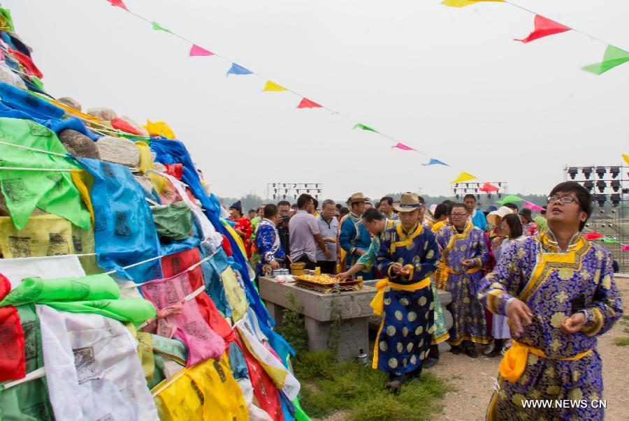 People take part in a Nadam fair in Hohhot, capital of north China's Inner Mongolia Autonomous Region, June 28, 2015. Nadam is a mass traditional Mongolian festival where people celebrate harvests and pray for good luck. (Xinhua/Ding Genhou)
