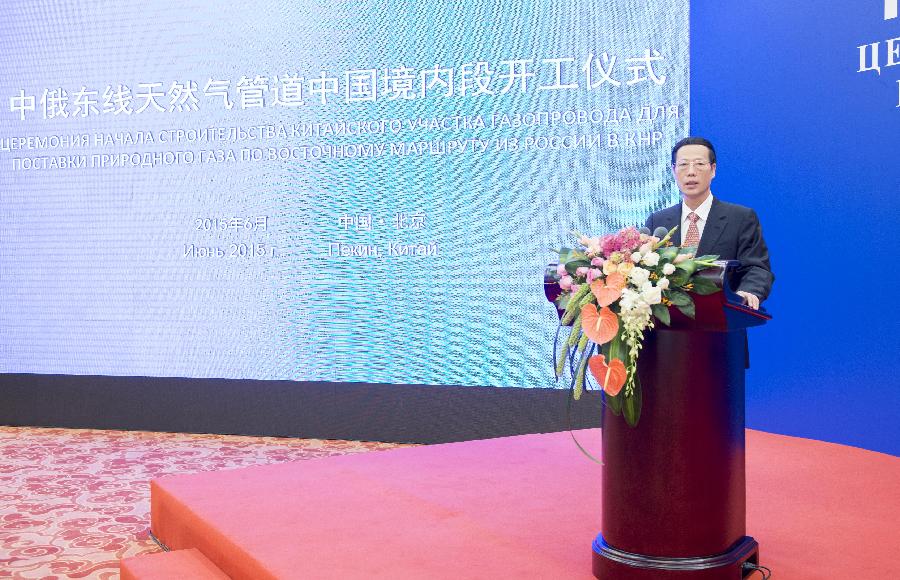 BEIJING, June 29 -- Chinese Vice Premier Zhang Gaoli announced here Monday afternoon start of construction on the Chinese section of the China-Russia East Route natural gas pipeline.