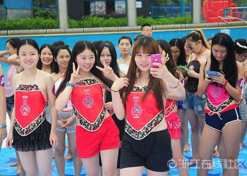 Thousands of girls from dozens of high schools and colleges attend a graduation ceremony in Dudou in Hangzhou, capital of east China's Zhejiang province, June 28, 2015. "Dudou", or bellyband, is a piece of cloth that covers one's belly. It dates back thousands of years. It was used by Chinese women as an undergarment in ancient times and can be considered China's most original underwear. However, Dudou of the diamond shape, which is popular today, had not appeared until the Qing Dynasty. (Photo/zjol.com.cn)