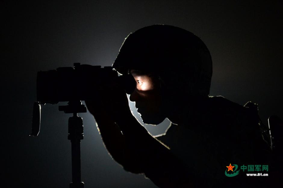 Recently, PLA soldiers from the 42nd Group Army, Guangzhou Military Region, Hainan Provincial Military District, PLA Hong Kong Garrison and PLA Macao Garrison conduct a drill at night in eastern Guangdong. (Photo/81.cn)