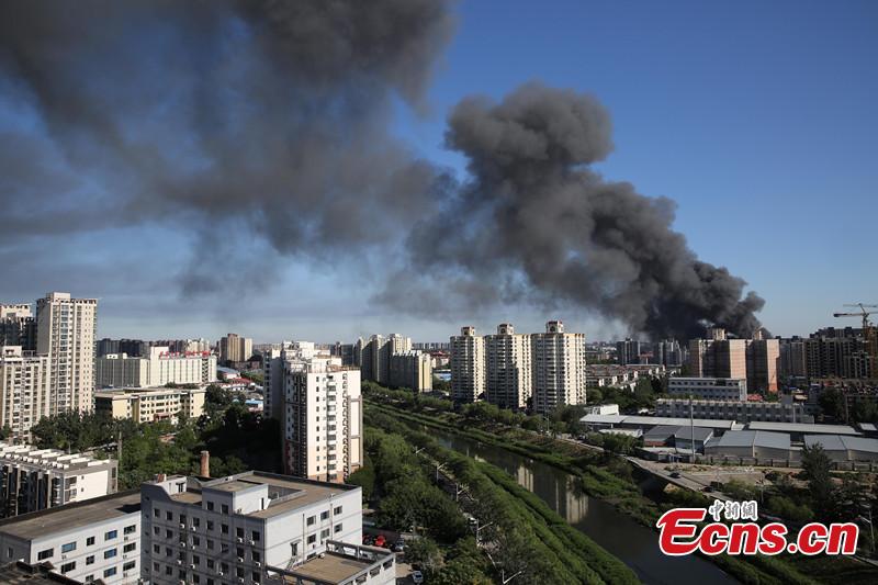 Smoke is seen near the Dahongmen Bridge in Beijing, capital of China, June 30, 2015. A warehouse of a wood factory in southern Beijing caught fire Tuesday. No casualties has been reported yet. The fire is still ongoing as of 4 p.m. Black smoke could be seen from several kilometers away. The cause of the accident is under investigation. (CNS photo/Xiong Ran)