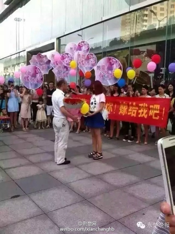 A post-60s man proposes to a young woman. (Photo/ Weibo)