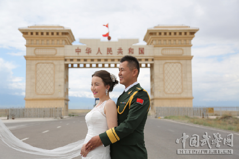 At the border between China and Kazakhstan, Mulati, an ethnic Kazakh police officer at the Dulata border inspection station, has a romantic wedding with his bride Senbati, who is also ethnic Kazakh, on May 28, 2015. (Photo/wj.81.cn)