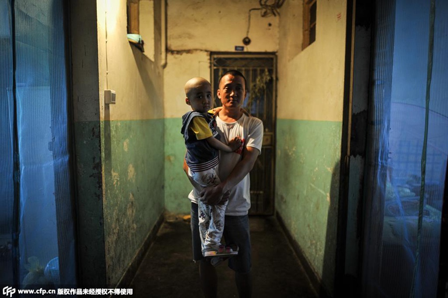Eleven Chinese fathers who have their heads shaved set up a bald father supporting group for those children with leukemia in China. (Photo/ CFP)