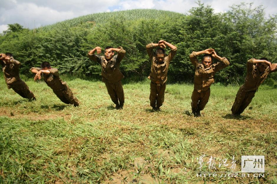 Braving the hot wave, the frontier soldiers conduct training including fighting in water, rock climbing in the mountain areas in south China's Guangxi. (Photo/81.cn)