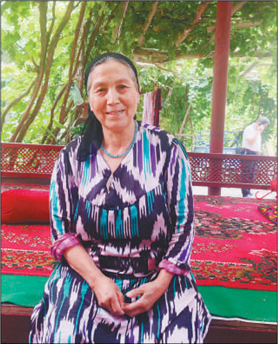 Every day, Hejerhan puts on her folk costumes and welcomes foreign and domestic tourists. People can enjoy the native Xinjiang cuisine like shashlik, hand pilaf, and Hejerhan's specialty Uyghur-style noodles with lamb sauce at her vineyard.