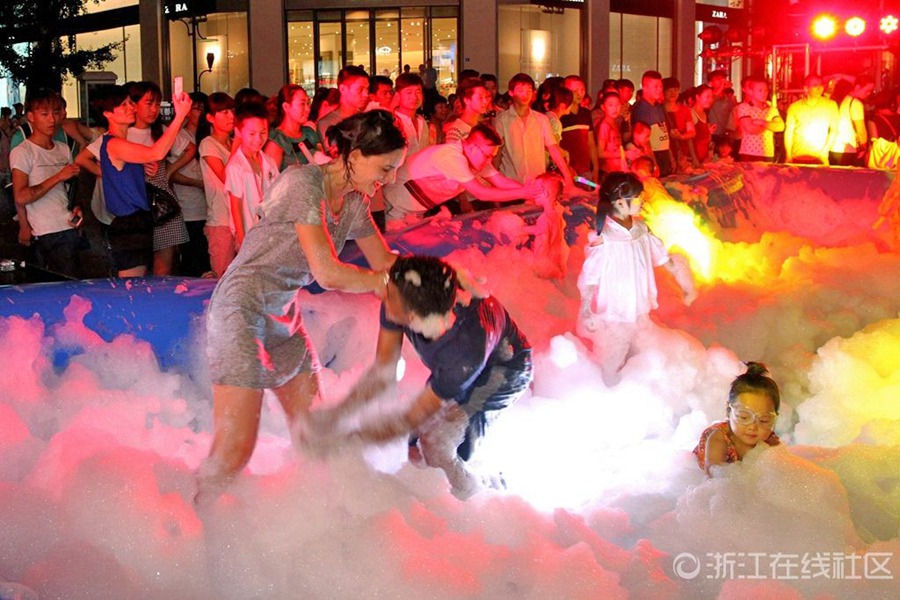 Foam party lands in walking street in Jinhua