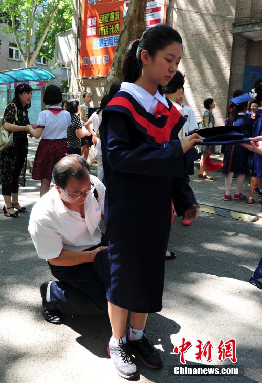 Pupils in “academic dresses” attend the graduation ceremony and salute to their teachers in the Primary School Affiliated to Shandong Normal University in Jinan on July 2, 2015. Nearly 500 graduates accepted graduation certificates from the headmaster. (Chinanews.com/Zhang Yong)
