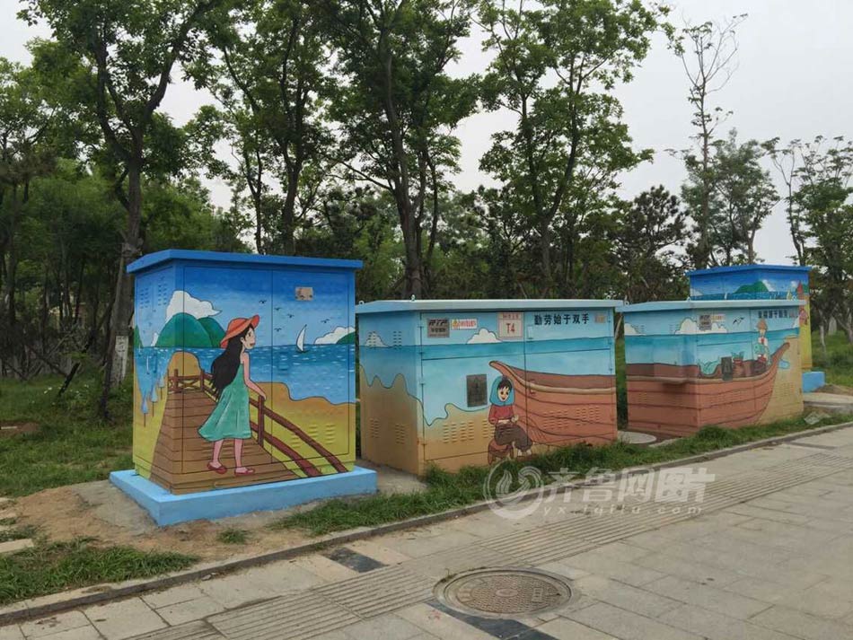 Distribution boxes and other municipal facilities are coated with colorful paintings in Huangdao district, Qingdao, east China's Shandong province. (yx.iqilu.com/Zhang Jingang)