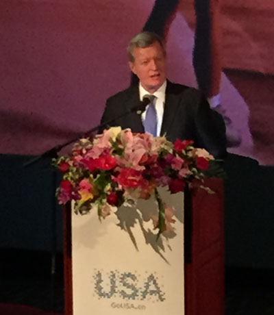 | US Ambassador Max Baucus gives a speech.” (People's Daily Online/Yao Xinyu) |