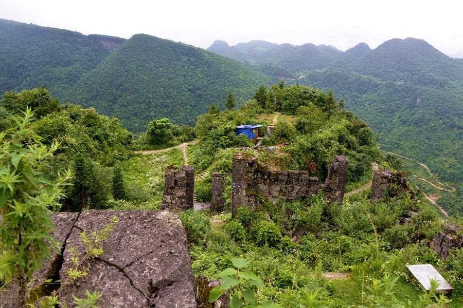 Photo taken on June 30, 2015 shows a scene of Hailongtun Fortress in southwest China's Guizhou Province. Tusi sites -- the remains of an ancient political system adopted by Chinese emperors to govern ethnic minority regions in south-central and southwest China -- were inscribed in the World Heritage List on Saturday. The inscribed sites, located in mountainous areas, are Laosicheng in Hunan Province, Tangya in Hubei Province and Hailongtun Fortress in Guizhou Province. Tusi literally means hereditary tribal headmen appointed by Chinese emperors to govern the often unruly ethnic minority regions in the central and western parts of south China, where the specific tribal governance system was adopted from the 13th to the early 20th century. (Xinhua/Luo Xinghan)