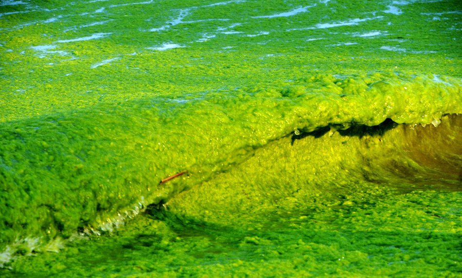 Enteromorpha is blown to the sea shore. (Photo/China Youth Daily)