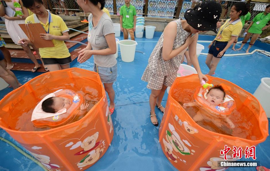 Two babies swim in the water. (CNS/Yang Huafeng)