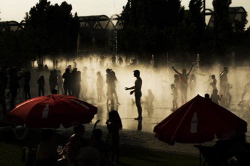 People play water at a fountain in Madrid, Spain on June 30 2015. (Photo/Xinuha)