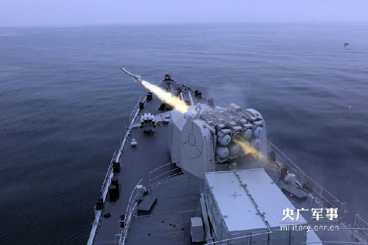 A tactical exercise is carried out by the Chinese Navy under simulated conditions of war in the Yellow Sea. Various types of missiles, torpedoes and artillery were fired during the drill. (Photo/ Wang Changsong)