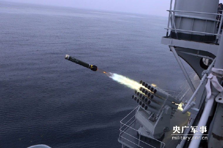 A tactical exercise is carried out by the Chinese Navy under simulated conditions of war in the Yellow Sea. Various types of missiles, torpedoes and artillery were fired during the drill. (Photo/ Wang Changsong)