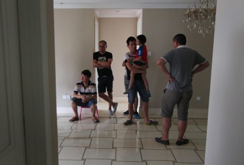 A funny "giant panda" mahjong contest is held in Jiuzhaigou scenic area, Aba Tibetan and Qiang Autonomous Prefecture, southwest China's Sichuan Province, July 5, 2015. The game was played by four "giant panda" mahjong enthusiasts and 136 "giant panda tiles" on a 100 square meter mahjong "table".