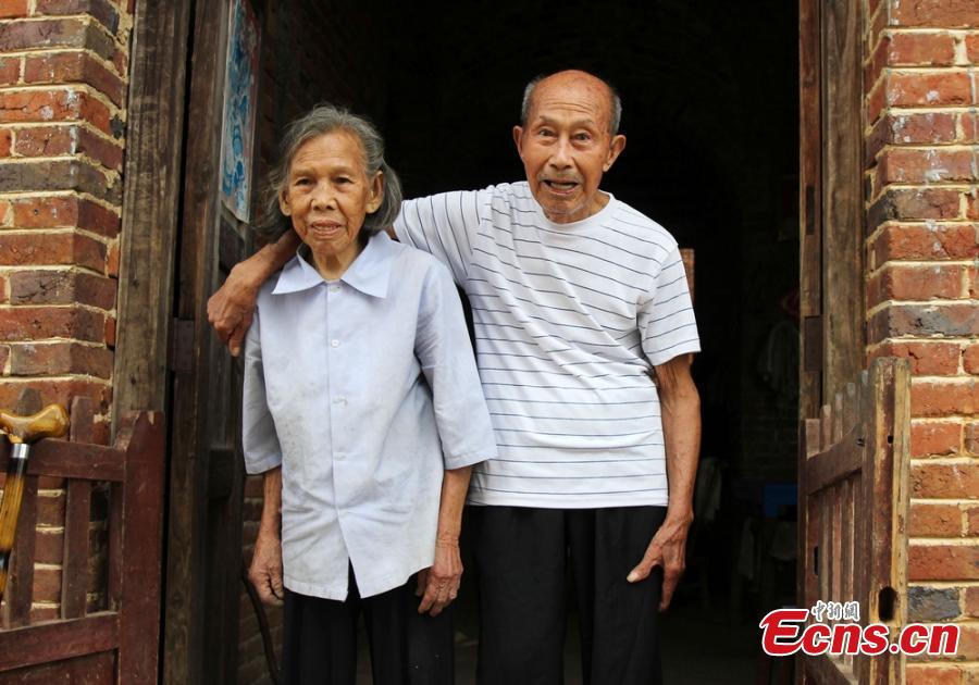 Xiao Xirong, 94, and his wife Wang Qihang, 84, pose for a photo in Ningyuan county, Central China’s Hunan province. Xiao was a soldier responsible for military communication during the War of Resistance Against Japanese Aggression (1937-1945). The couple has four sons and two daughters. (Photo: China News Service/He Hongfu)