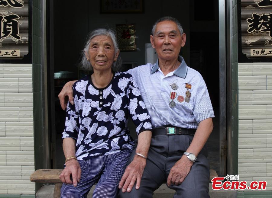 Huang Shuzheng, born in Aug 1926, and his wife Zhou Huiyu, 80, pose for a photo in Daoxian county, Central China’s Hunan province. Huang joined in wars against Japanese troops in Liuzhou of Guangxi Zhuang autonomous region and Guizhou province. He also fought during the Korean War. Huang and his wife married in 1955 and they have two sons and two daughters. (Photo: China News Service/He Hongfu)