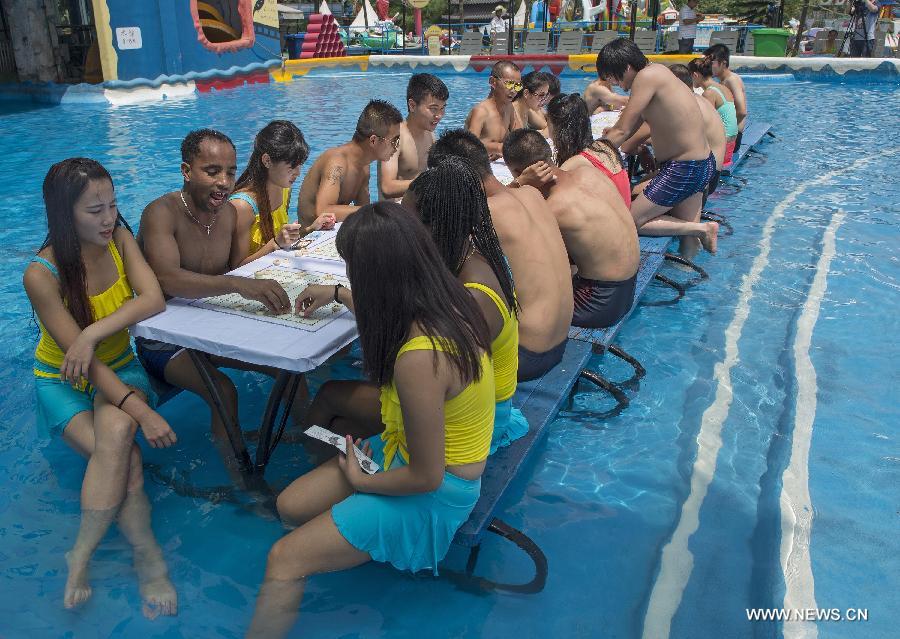 People play Chinese chess in a water park in Chongqing, southwest China, July 7, 2015. (Xinhua/Chen Cheng)