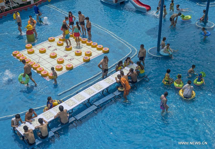 People play Chinese chess in a water park in Chongqing, southwest China, July 7, 2015. (Xinhua/Chen Cheng)