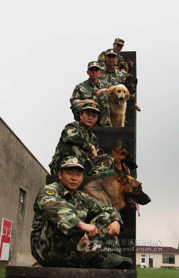Soldiers and military dogs pose for a photo. (Photo/TP.chinamil.com.cn)
