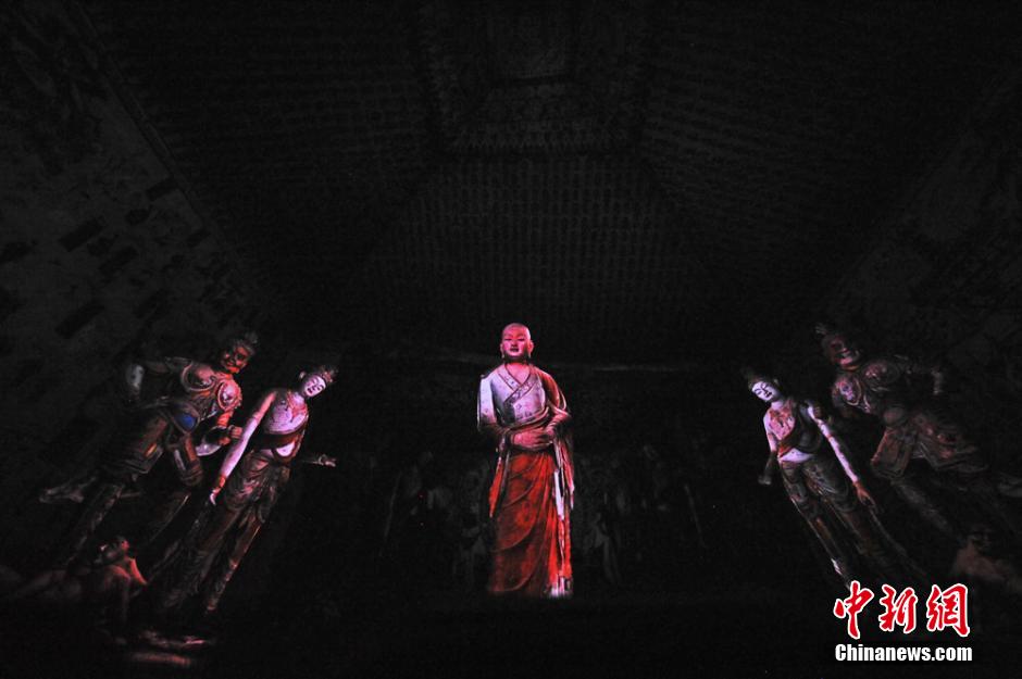 | The Mogao Grottoes began to play “Incredible Buddhist Grottos” - a digital film with 180 degrees viewing angle - to tourist recently. The film is the world first UHD 8K digital full dome film themed grotto art. Tourists were all stunned by the fine images. (CNS/Yang Yanmin) |