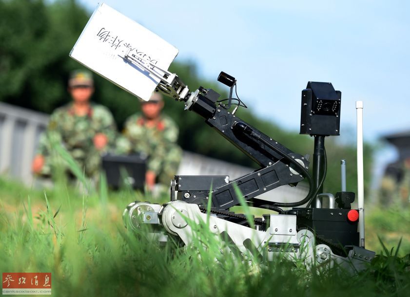 Soldiers use robot to remove the explosive, July 9, 2015. (Xinhua/Zhang Chenlin)