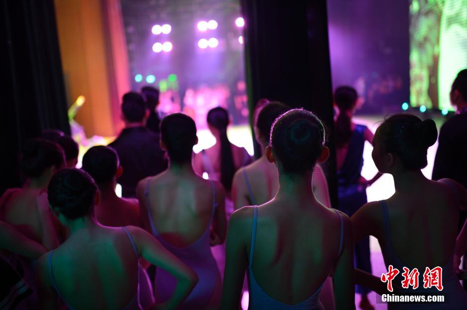 Students watched the show at the backstage, waiting for their turn to perform on July 7, 2015. (CNS/ Liu Wenhua)