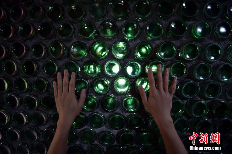 When everyone is busy with their job finding or preparation for graduate school, senior student Li Rongjun is working on his own business - a cabin made of 8,500 beer bottles. The cabin has two floors, and the upper floor is composed of green beer bottles. His neighbors came to visit the beer bottle cabin, and were all amazed by the spectacular feeling of staying inside this cabin. But Li still has a long way to go before his little "business" starts running. Besides innovation, cooperation with companies with professional promotional skills to make the cabin more appealing to the market is key to his success.(Chinanews/Zeng Wei)