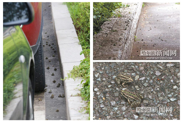 Thousands of toads appeared on several streets of Harbin, northeast China’s Heilongjiang province after a rain on July 11, 2015.