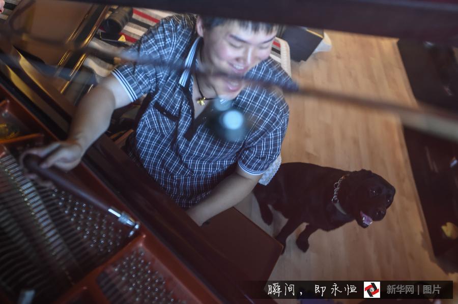 Mixiu waits Wu Lei while he works, July 10, 2015. (Xinhua/Ou Dongqu)