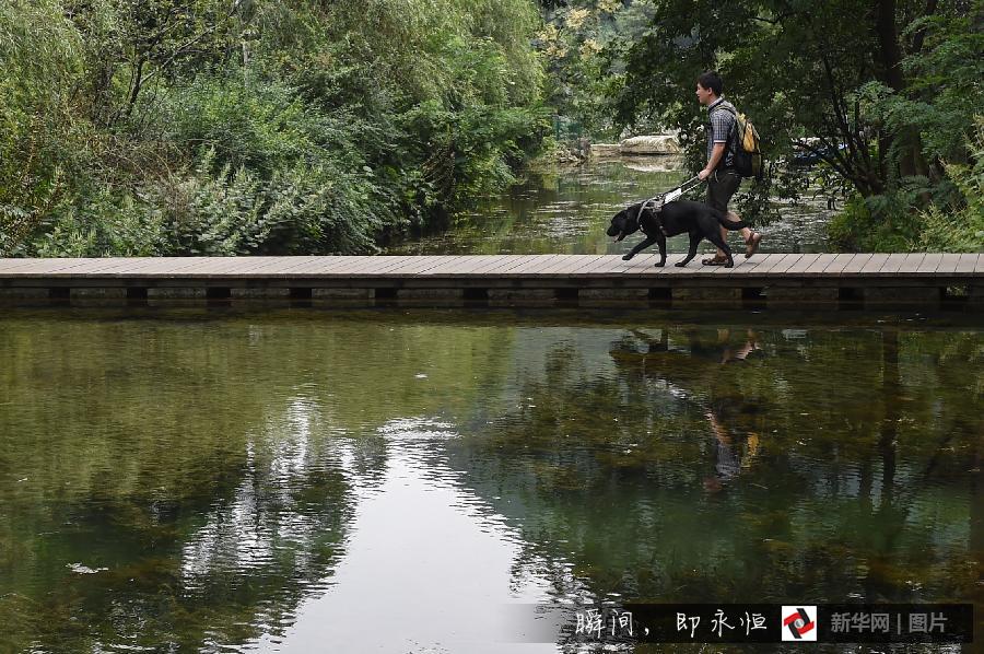 Mixiu leads Wu Lei to get across the bridge, July 10, 2015. (Xinhua/Ou Dongqu)