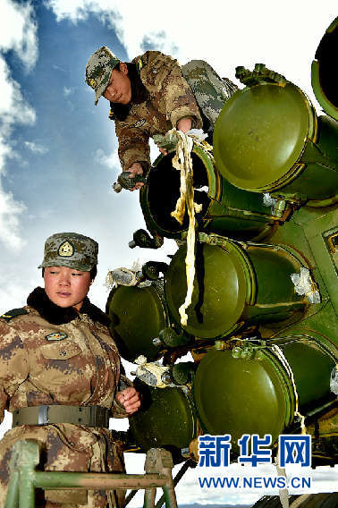 Photo shows female PLA soldiers in a long-range rocket launcher live-fire exercises on the Qinghai-Tibet Plateau. An artillery detachment under the Tibet Military District of the Chinese People's Liberation Army (PLA) conducted live-fire exercises recently. (Photo/Xinhua)