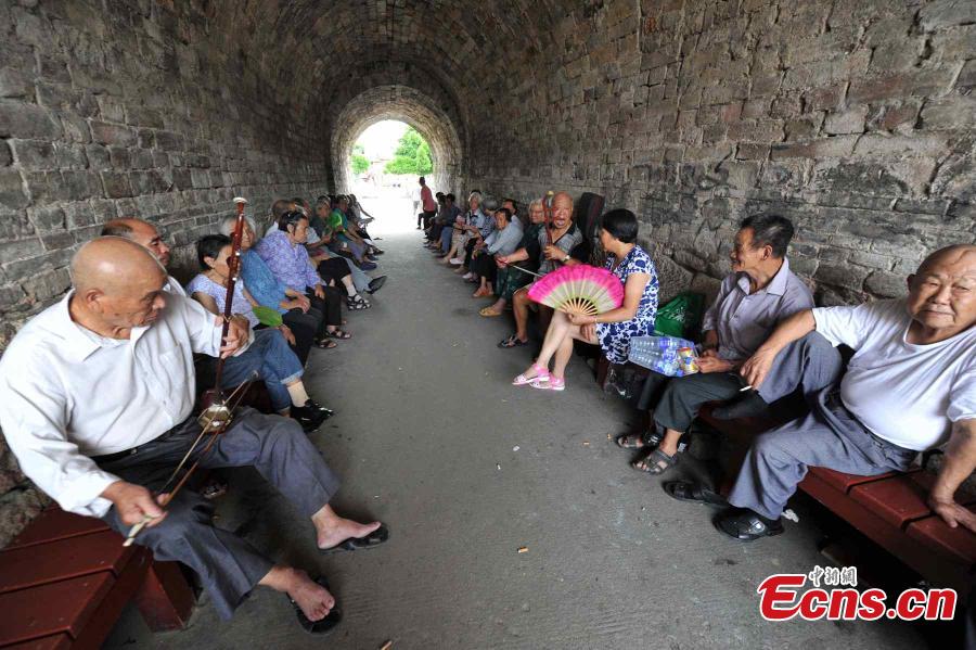 Residents shelter from the scorching sun under an old city gate in Changting county, East China’s Fujian province, July 14, 2015. The city gate’s entrance tunnel is 8.55 meters long and the arch is 3.4 meters high. It's a popular place for senior citizens to keep cool on hot days. Changting is a city originally built in the Tang Dynasty (618-907). (Photo: China News Service/Zhang Bin)
