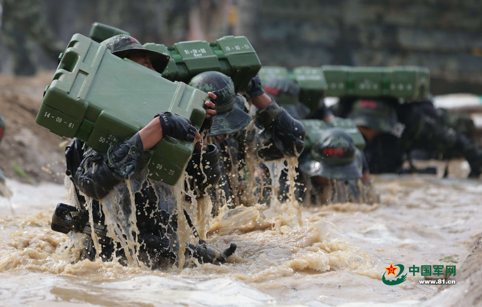 One hundred Chinese special commandos are in devil training in a training base of Beijing Armed Police Corps on July 10, 2015. (81.cn/Li Guangyin)