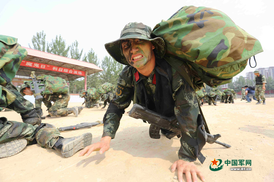 | One hundred Chinese special commandos are in devil training in a training base of Beijing Armed Police Corps on July 10, 2015. (81.cn/Li Guangyin) |