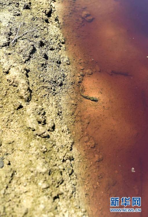 The water runs dark and red at a section of the polluted Duliujian River in Tianjin municipality, July 7, 2015. The river, which runs for 67 kilometers, is a major flood diversion project that runs through several regions in Tianjin, and it provides water for the Beidagang Wetland, a significant habitant for migratory birds in East Asia. Companies based along the river's banks have been polluting its waters for ten years. Residents living near the river complain about the bad smell, diminished harvests, and suspicious deaths of poultry. (Photo/Xinhua)