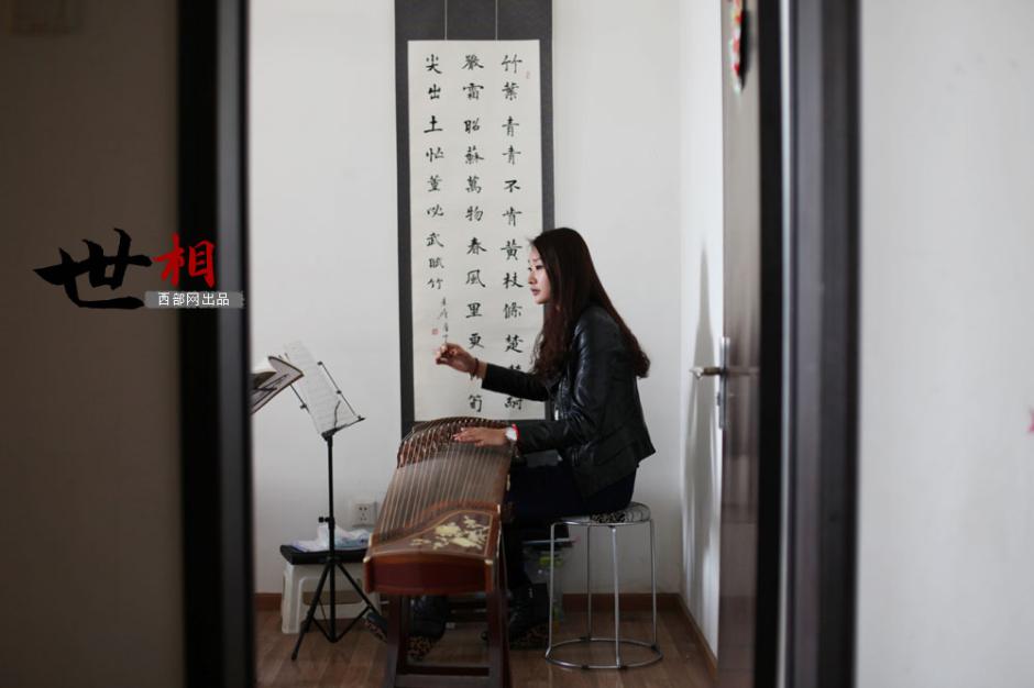 Zhang Wenjin plays guzheng in her music training center. (cnwest.com/Wei Yongxian)