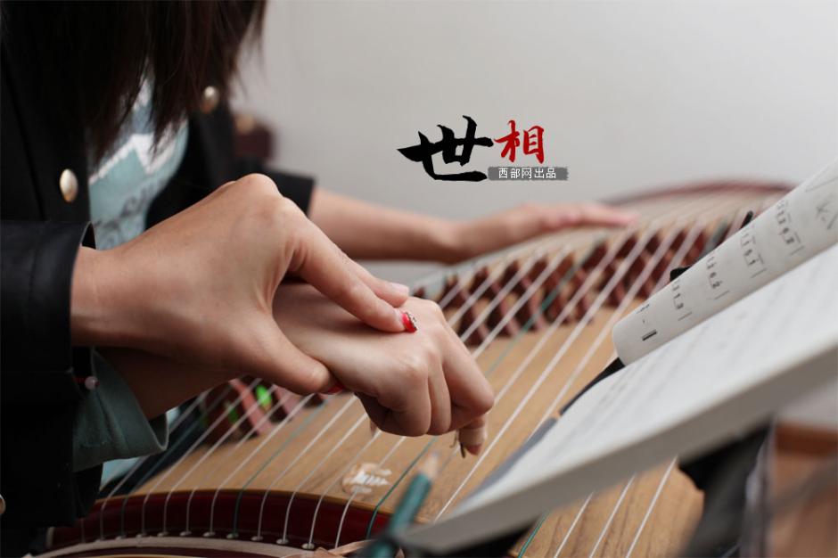 Zhang Wenjin teaches a student to play guzheng in her music training center. (cnwest.com/Wei Yongxian)