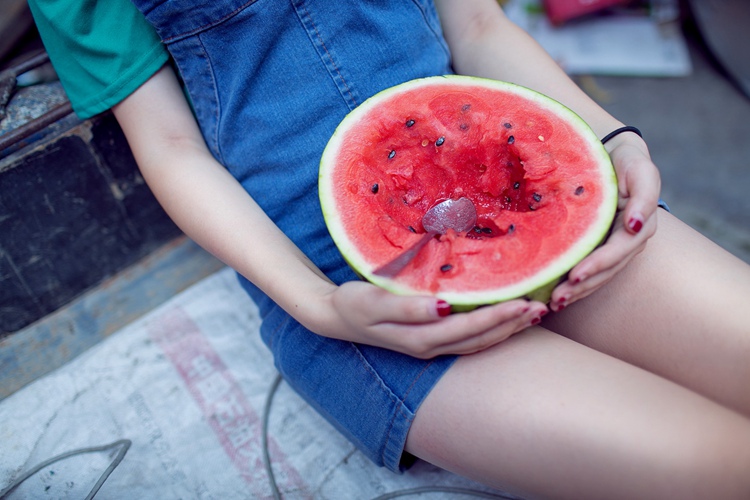 Photos of a college student posed with watermelons go popular online.(Photo source: scol.cn)