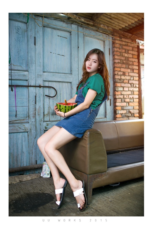 Photos of a college student posed with watermelons go popular online.(Photo source: scol.cn)