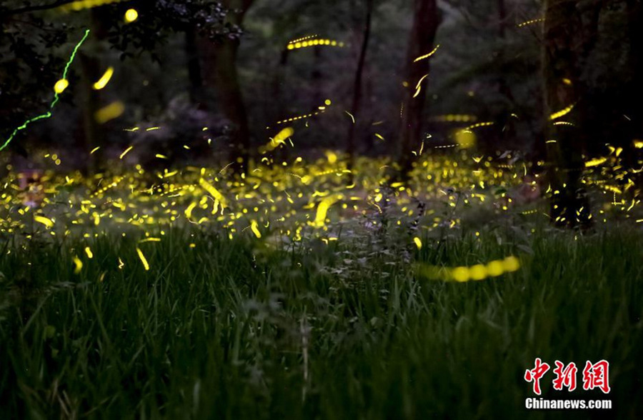 July 14 evening, a constellation of glow-worms lights up the woods in Zijin Mountain,