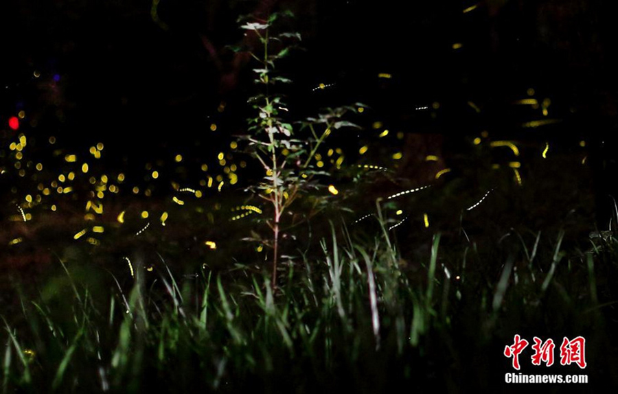 July 14 evening, a constellation of glow-worms lights up the woods in Zijin Mountain,