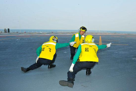 A group of photos show the training scene of the soldiers serving at Liaoning aircraft carrier. Their hand signals when directing the aircrafts make the legend 'aircraft carrier style' popular on the internet with many people posting imitations of it. (Photo/China Youth Daily)