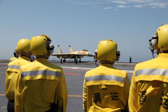 A group of photos show the training scene of the soldiers serving at Liaoning aircraft carrier. Their hand signals when directing the aircrafts make the legend 'aircraft carrier style' popular on the internet with many people posting imitations of it. (Photo/China Youth Daily)